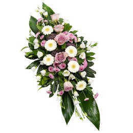 Lila-weißes Trauergesteck
